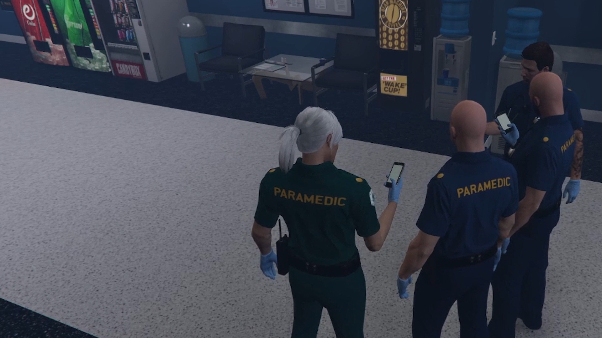 Le temps d’un instant, les personnages de GTA RP interprétés par des streameur·euse·s dégainent leurs smartphones pour jouer à SNAKE ou répondre à un SMS. La vidéo met en scène des usages du smartphone qui existent dans un pur entre-deux, où nous percevons le chevauchement des différents processus d’appropriation d’objets numériques en jeu et hors-jeu. Si le smartphone virtuel des joueur·euse·s est un outil pour faire avancer l’intrigue, la manière dont il est utilisé se confond parfois sensiblement avec un usage hors-jeu. Ainsi, lorsque la volonté de « rester dans dans son personnage » interfère avec l’inertie et l’ennui quotidien, nous observons les itinéraires d’usage quasi intimes des streameur·euse·s qui scrollent inlassablement ou évacuent furtivement une notification…..